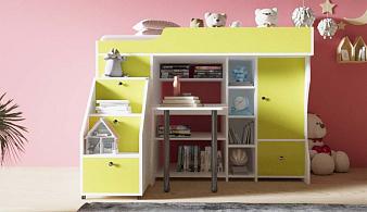 Кровать-чердак со столом и полками Рея-10 BMS