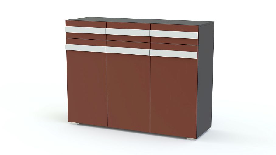 Стильный комод отлично впишется в интерьер современной квартиры или студии. Благодаря компактным размерам он не займет много места, а матовые фасады сделают помещение визуально просторнее. Вместительность модели обеспечивают три выдвижных ящика и распашные отделения с оригинальными ручками, которые позволят разместить постельное белье, предметы гардероба и разнообразные мелочи. На столешнице достаточно места для техники и элементов декора. Комод Дизайн Люкс 9 BMS, выполненный в насыщенных цветах, внесет в атмосферу дома яркие краски и позитив.