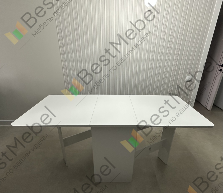 Заказ 00000150059.Кухонный стол - недорогой, но при этом крепкий и устойчивый. Выглядит аккуратно и стильно, белый цвет делает кухню светлее. Легко протирать, никаких следов не остаётся. Для своей цены — просто отличный вариант. Очень довольна им.