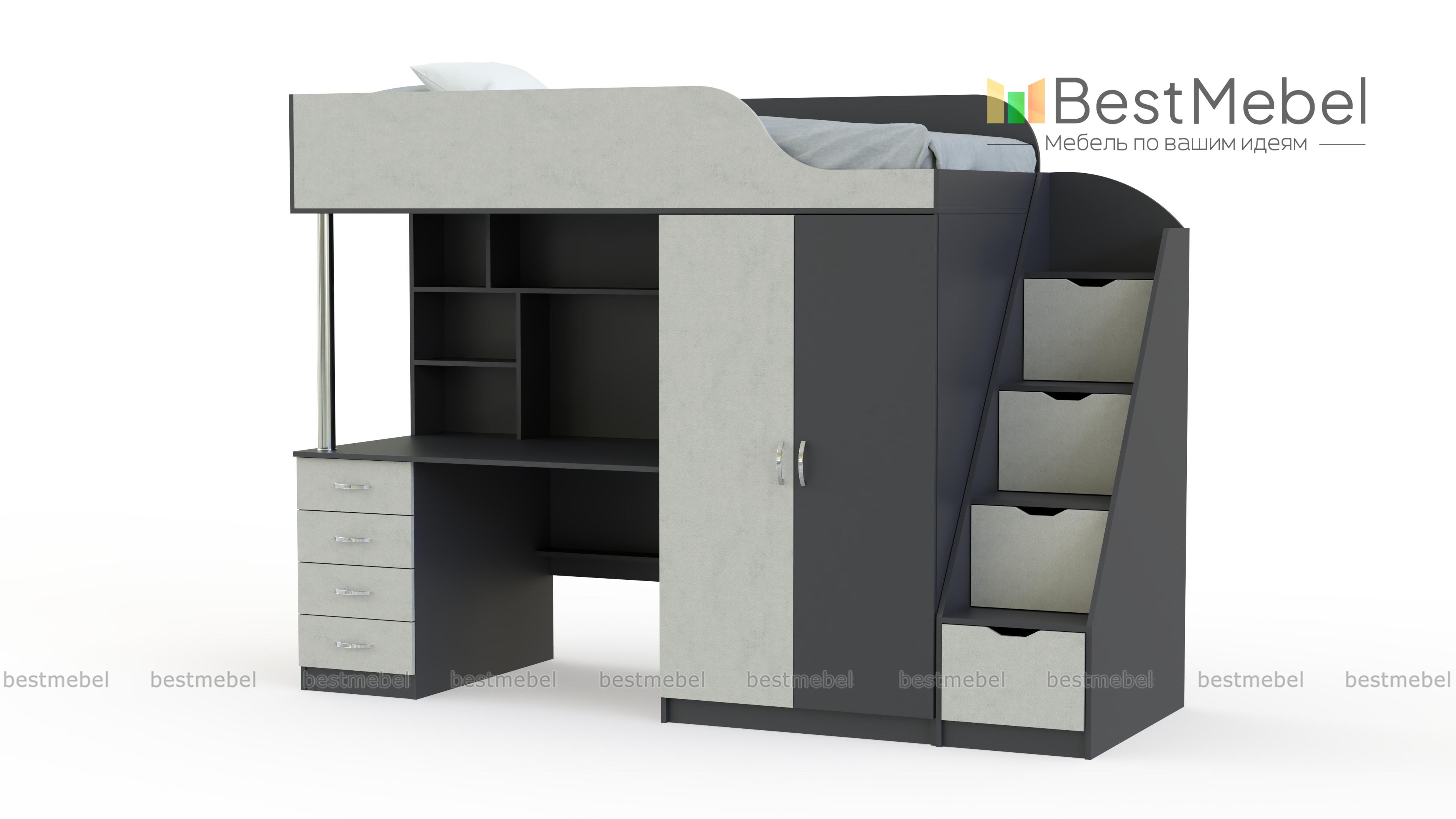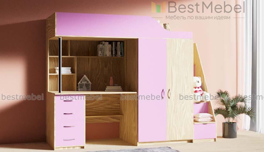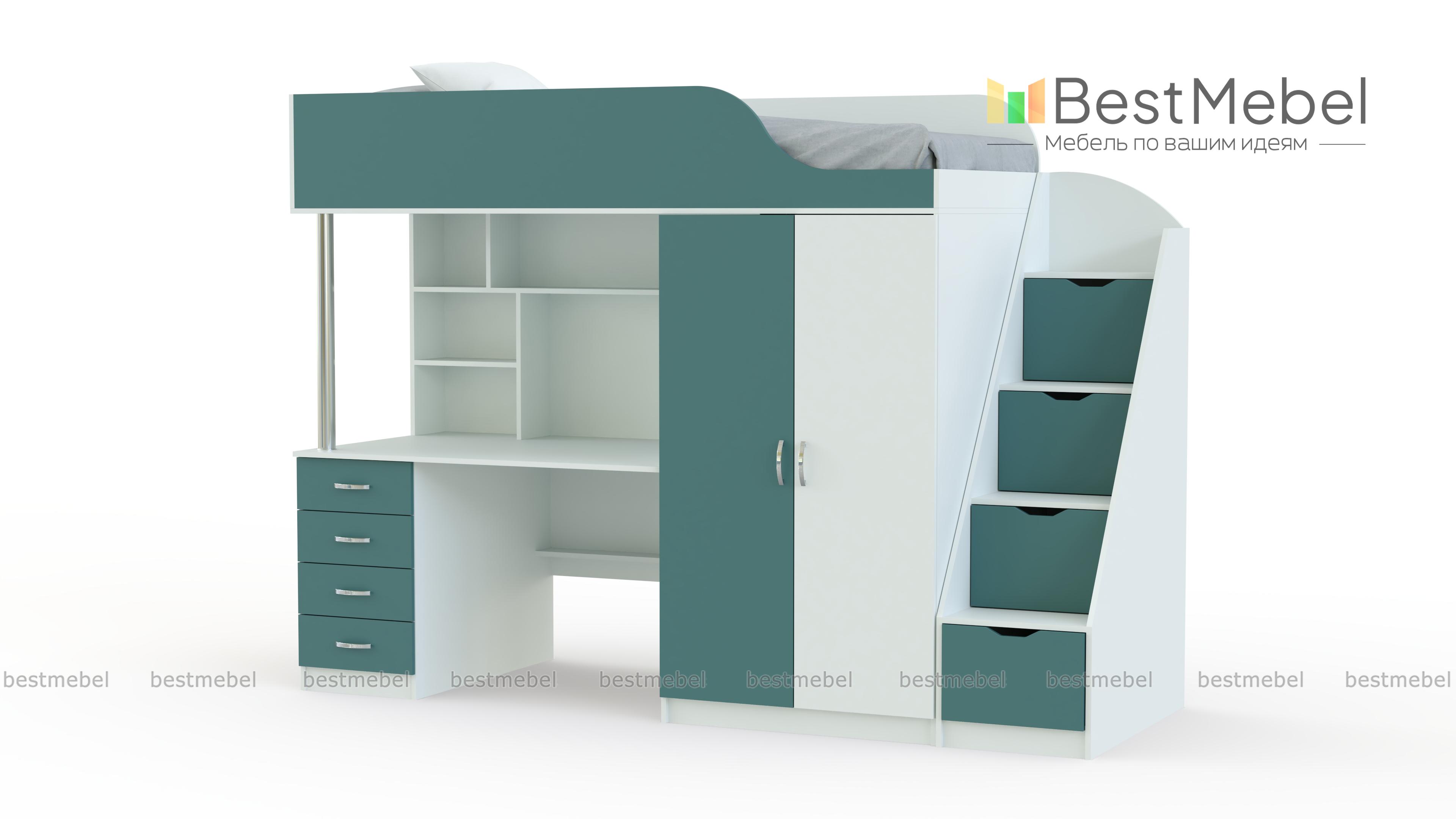 Кровать-чердак с рабочей зоной Мираж К7-4 BMS гармонично впишется в интерьер современной детской и поможет оборудовать всем необходимым даже небольшую комнату. Композиция состоит из расположенной на втором ярусе кровати с защитным бортиком, встроенного распашного шкафа для одежды, рабочей зоны со столом, тумбой и книжными полками, а также устойчивой и практичной лестницы-комода. Корпус светлых древесных тонов дополняют цветные фасады. Купить кровать-чердак с рабочей зоной Мираж К7-4 BMS приглашаем в наш интернет-магазин.