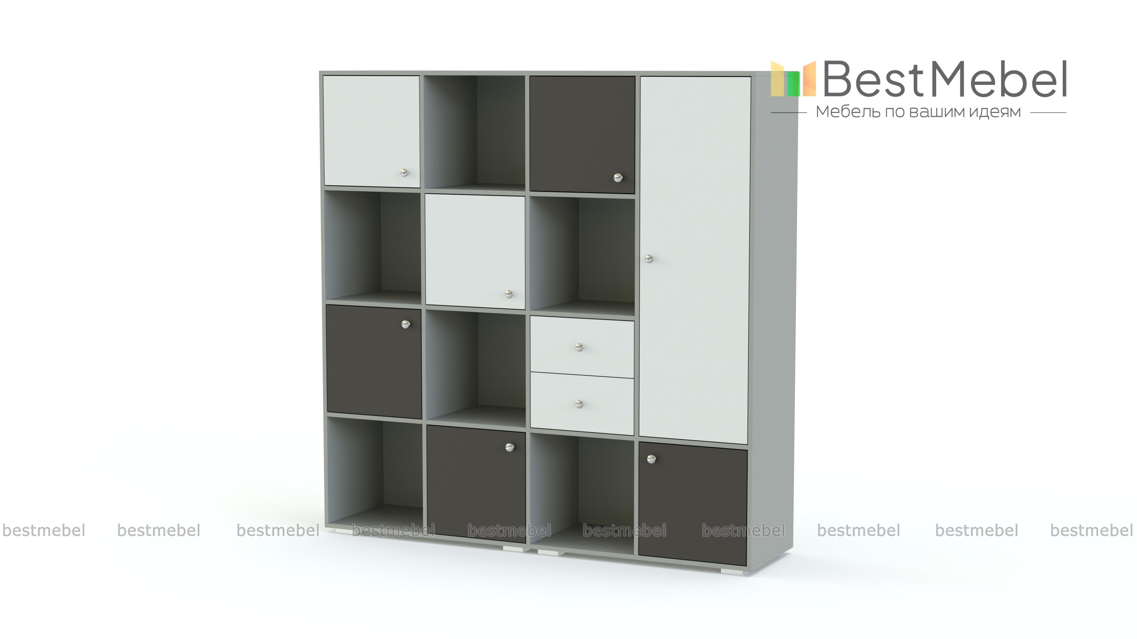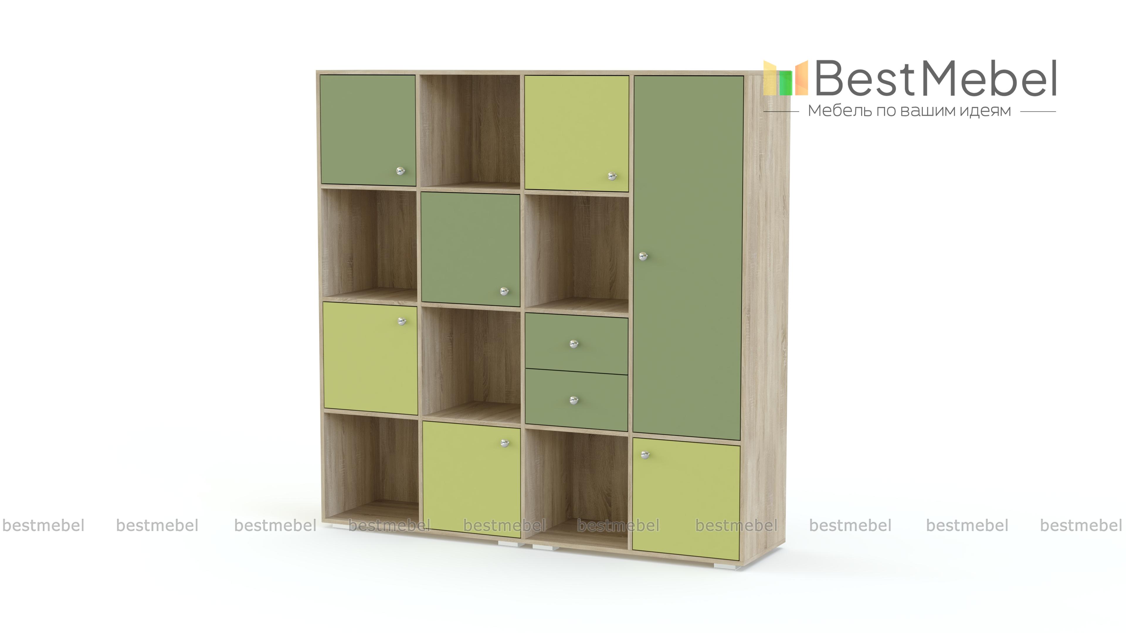 Стеллаж Джери 2 BMS отличается крупными габаритами и редкой вместительностью. Современная модель поможет обустроить яркую и комфортную детскую, компактно разместив вещи ребенка – от одежды до игрушек. Конструкция представляет собой комбинацию просторных открытых полок, распашных отделений и шкафчика с выдвижной штангой. Выполненный в светлых тонах под массив дерева, стеллаж с цветными фасадами гармонично впишется в меблировку благодаря возможности подбора оттенков. Купить стеллаж Джери 2 BMS по лучшей цене приглашаем в наш интернет-магазин.