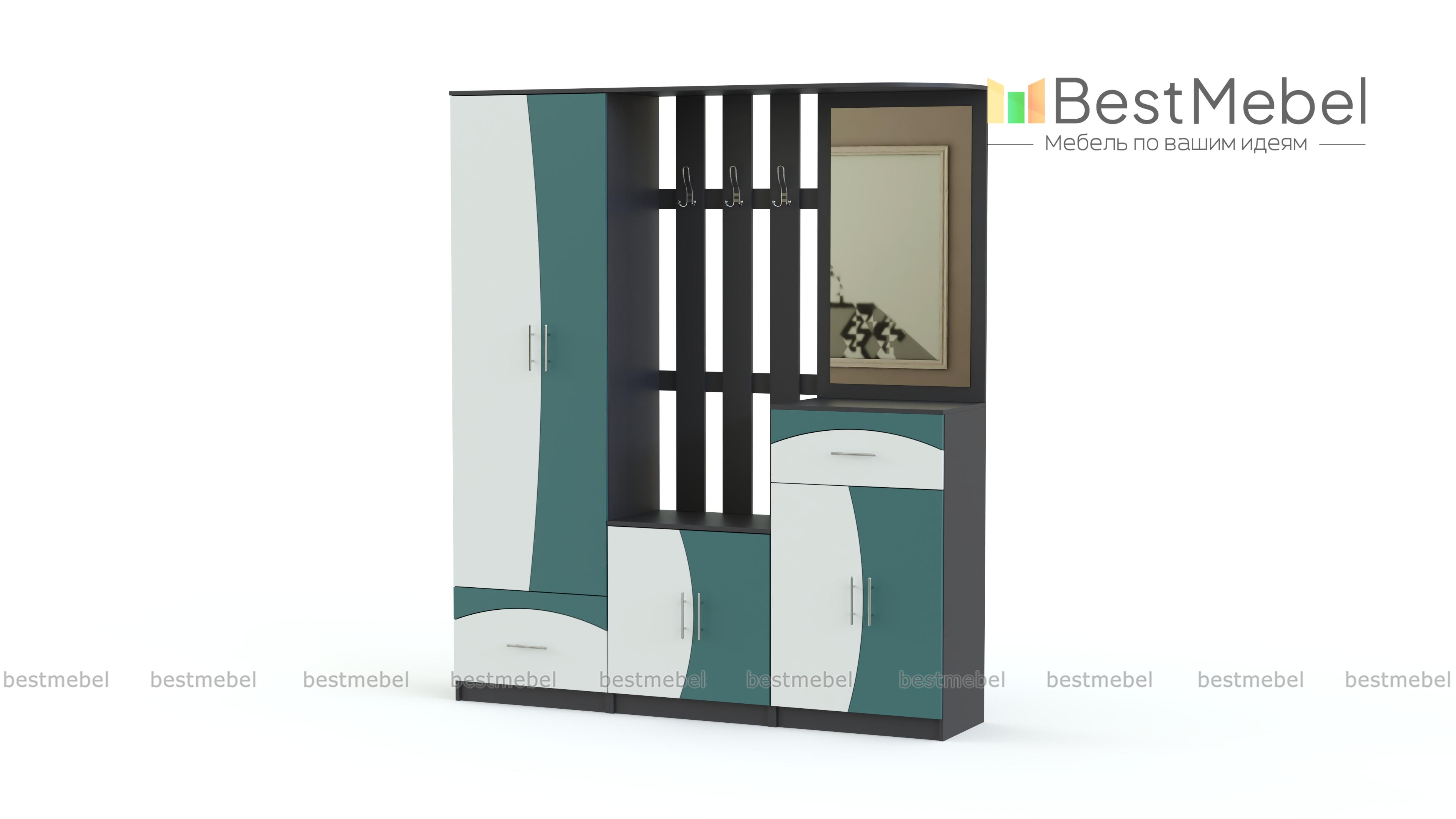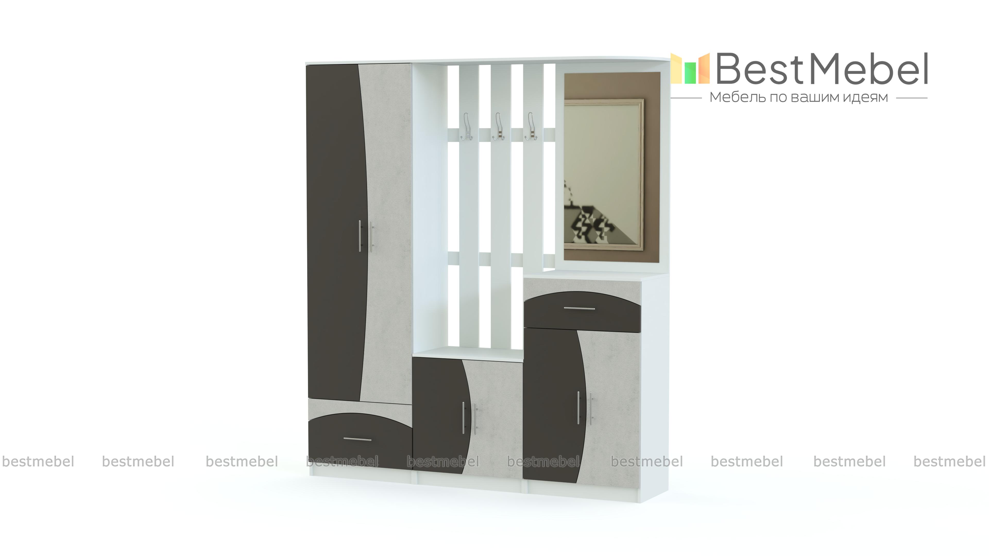 Стенка-прихожая «Идеал 28» BMS – комплект футуристичного дизайна, оригинальную расцветку которого непременно оценят поклонники современных интерьеров. Вместительность модели обеспечивают распашной шкаф, секция с тумбой и открытой вешалкой и высокая тумба, совмещенная с зеркалом. Необычно стилевое решение матовых фасадов – геометрический яркий рисунок на фоне светлого корпуса. Купить стенку-прихожую «Идеал 28» BMS по лучшей цене вы всегда сможете в нашем интернет-магазине.