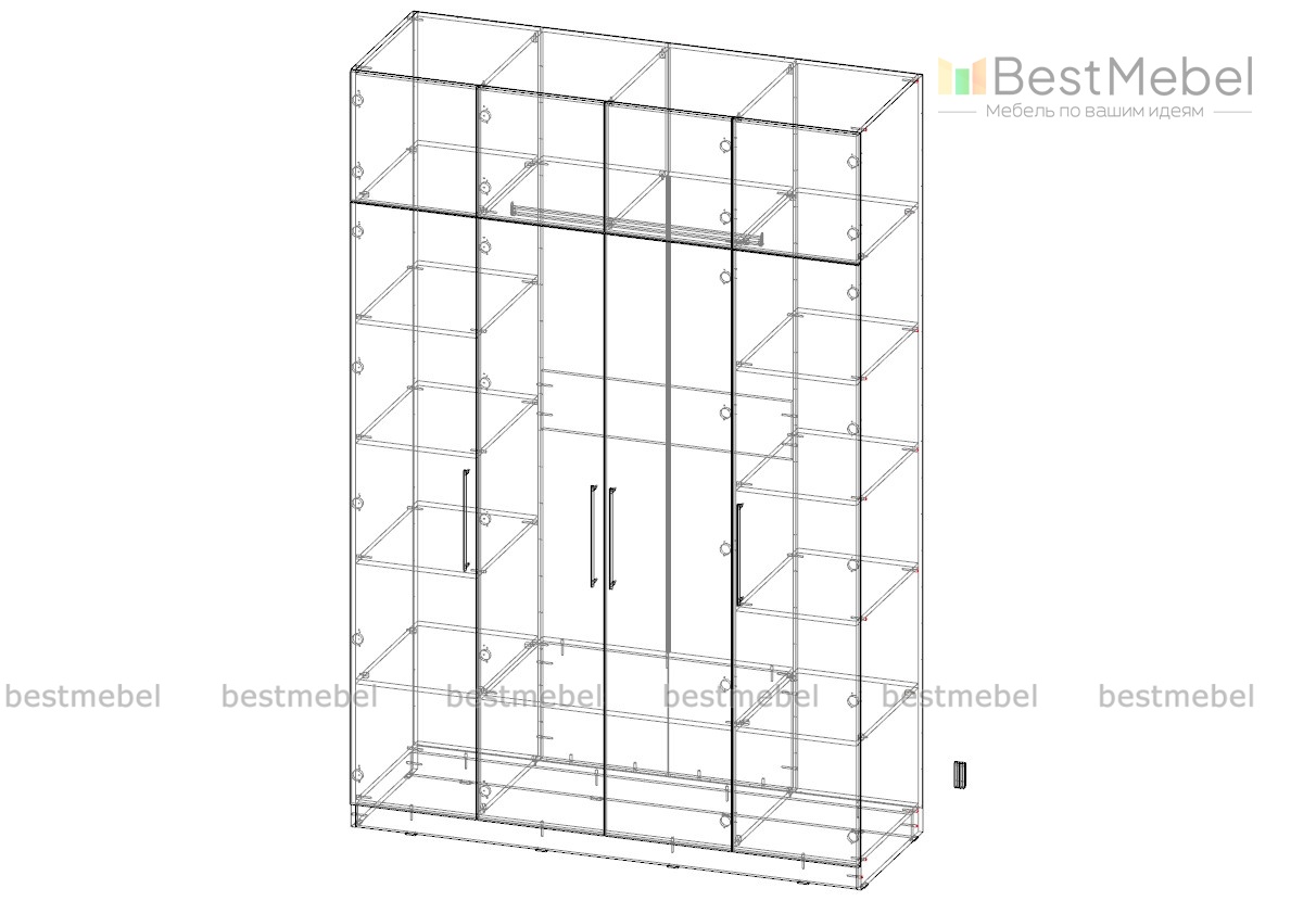 Распашной шкаф Вилета 8 отличается минималистичным дизайном и хорошей вместительностью. Гардеробное отделение со штангой и полками дополнено распашными антресолями и расположенными по бокам бельевыми пеналами. Лаконичный силуэт и отсутствие лишних деталей делают модель по-настоящему универсальной. Купить шкаф для хранения предметов гардероба и домашнего текстиля вы сможете на сайте нашего интернет-магазина.