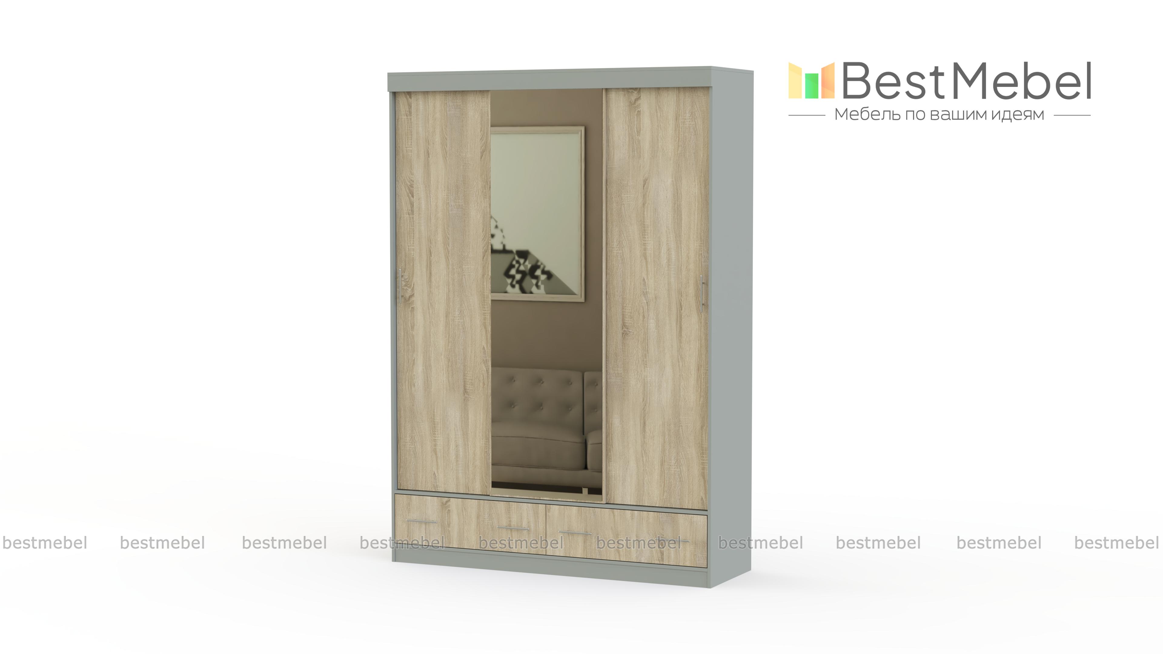 Шкаф-купе Модерн-2 BMS отличается классическим дизайном и сдержанными расцветками древесных тонов. Уместный и в традиционном, и в современном интерьере, шкаф поможет организовать аккуратное хранение одежды, обуви и аксессуаров. Фасады декорированы зеркалом в полный рост, незаменимым в прихожей, спальне или гардеробной. Просторное отделение со штангой дополняют антресоль, секция с полками и выдвижные ящики в основании. Купить шкаф-купе Модерн-2 BMS недорого приглашаем в наш интернет-магазин.