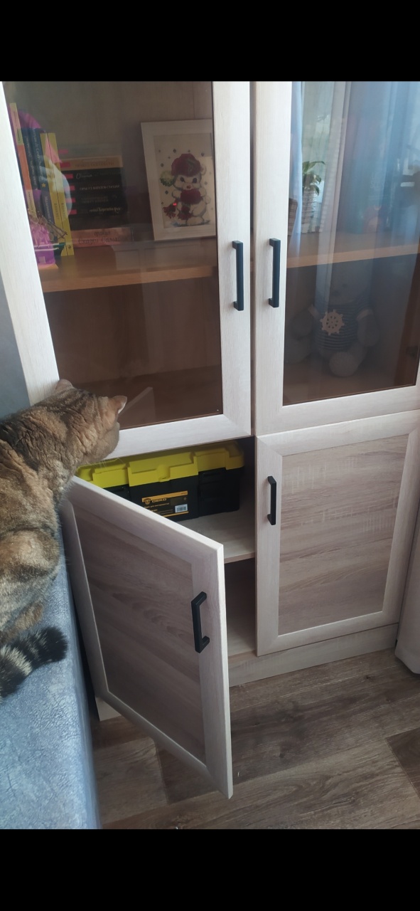 Шкаф мечты наконец-то и у меня. Отличный просто, никаких недочётов Выбирала с доводчиками и бронз.стеклом. Цвет дуб сонома.Привезли быстро, собирается легко и надёжно.Идеальный.Внизу можно хранить ящик с инструментами и швейную машинку.На фото петли ещё не регулированы, но сейчас всё ок, без щелей