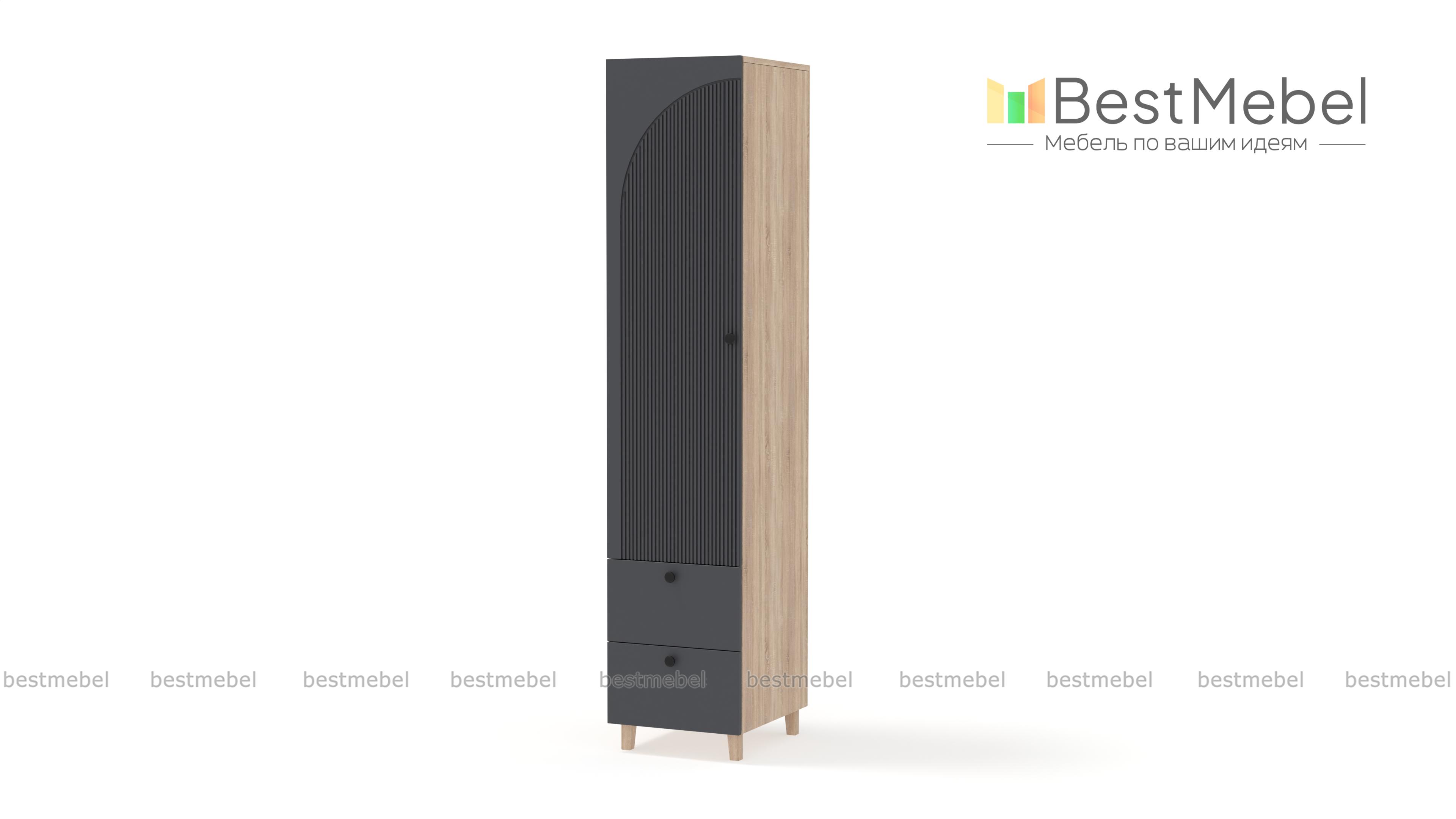 Шкаф-пенал Вивьен 4 BMS может использоваться как часть комплекта или самостоятельный предмет обстановки спальни, гостиной или прихожей. Стильный пенал с высокими ножками выполнен из ламинированной плиты и МДФ с рельефной отделкой. Помимо основного распашного отделения модель укомплектована парой выдвижных ящиков для хранения мелких вещей. Купить шкаф-пенал Вивьен 4 BMS приглашаем в наш интернет-магазин с изготовлением по индивидуальным размерам.