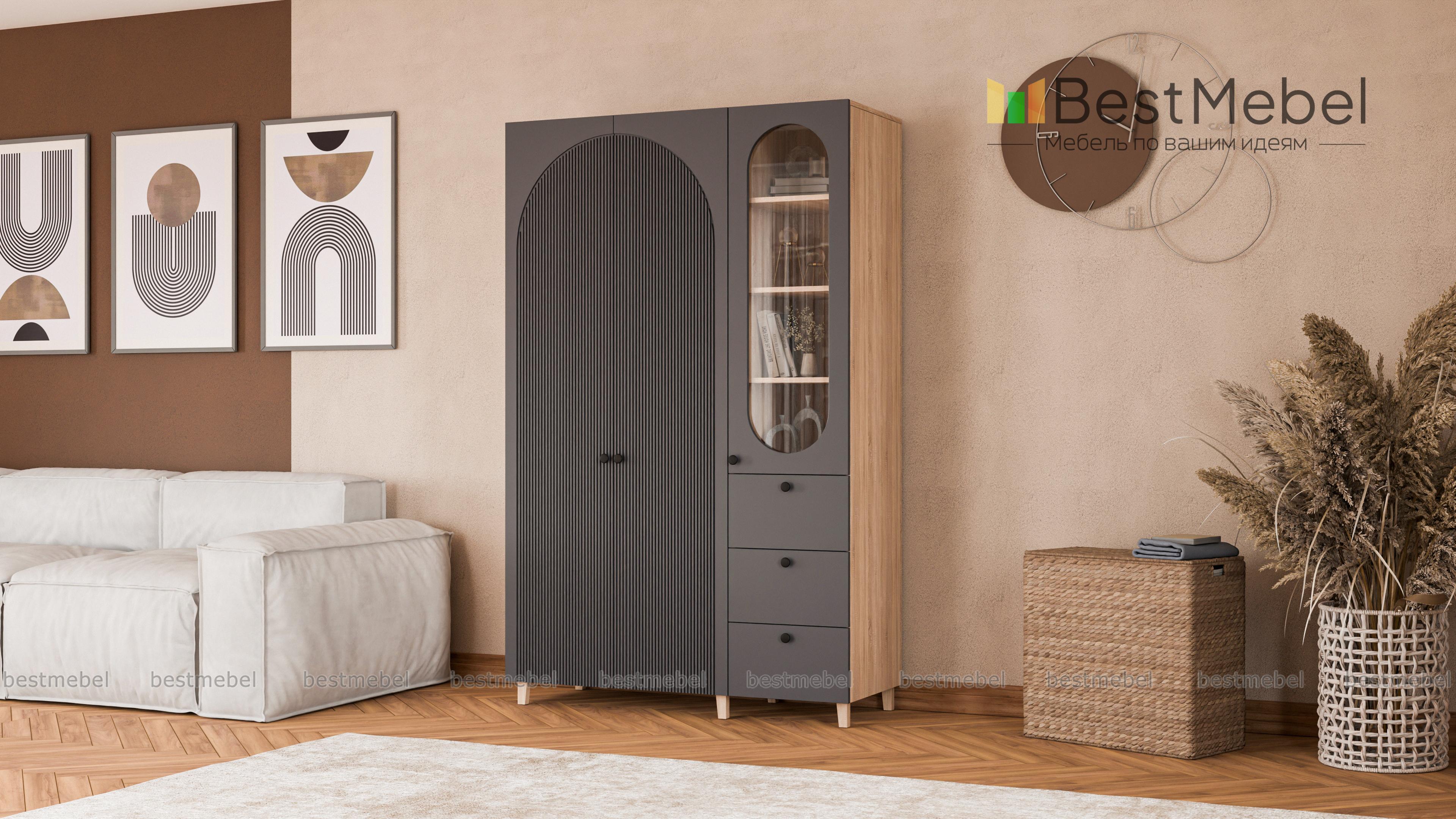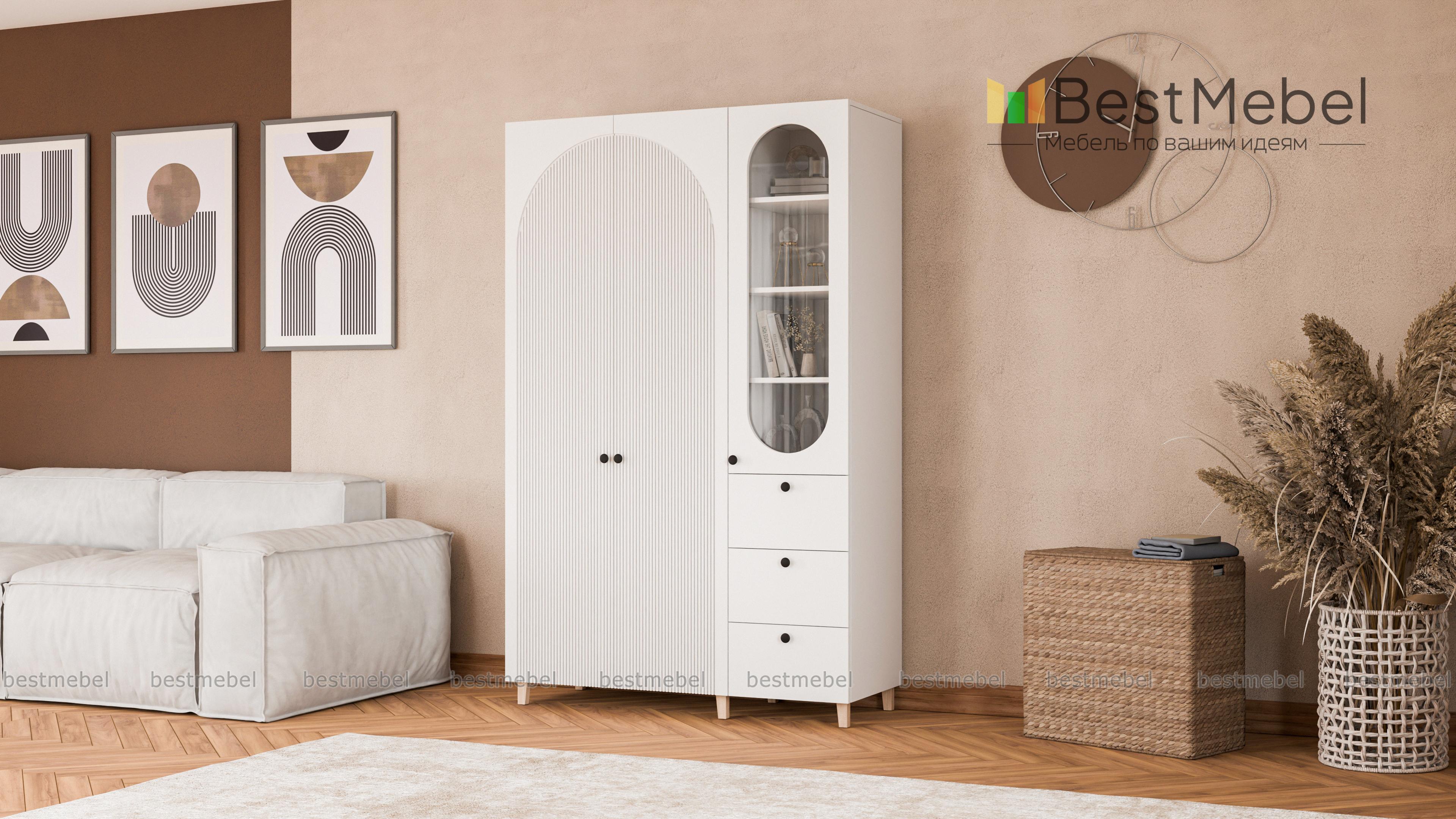 Шкаф распашной Вивьен 23 BMS стильно выглядит и оборудован всем необходимым для поддержания порядка в детской комнате, спальне или гостиной. Скрытое двумя дверцами платяное отделение, полки за стеклом и три ящика помогут бережно разместить одежду, книги и тетради, декоративные мелочи и материалы для творчества. Полукруглые вырезы и рельеф на фасаде придают яркую индивидуальность дизайну. Купить шкаф распашной Вивьен 23 BMS вы сможете в нашем интернет-магазине с учетом оптимальных размеров.