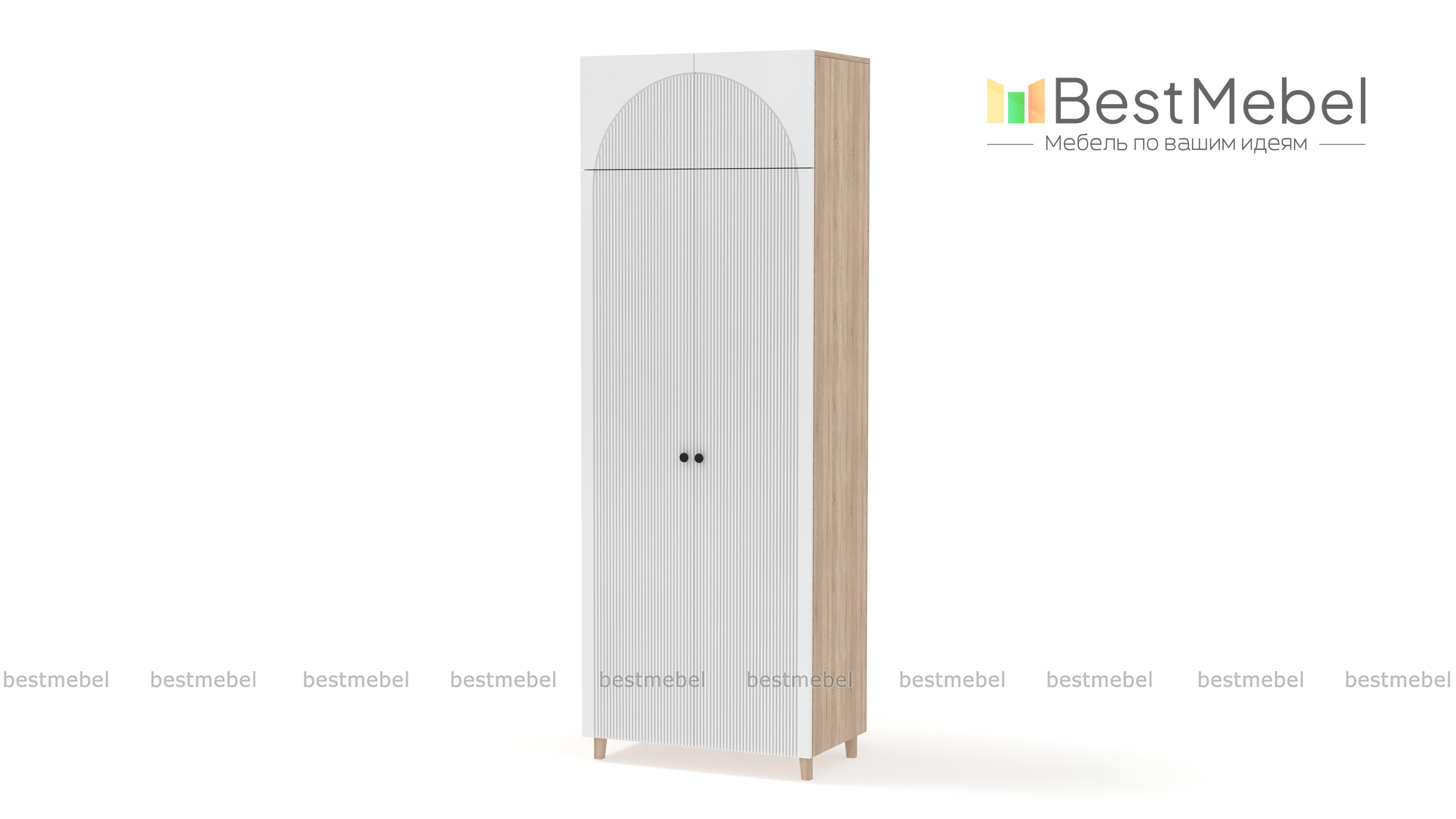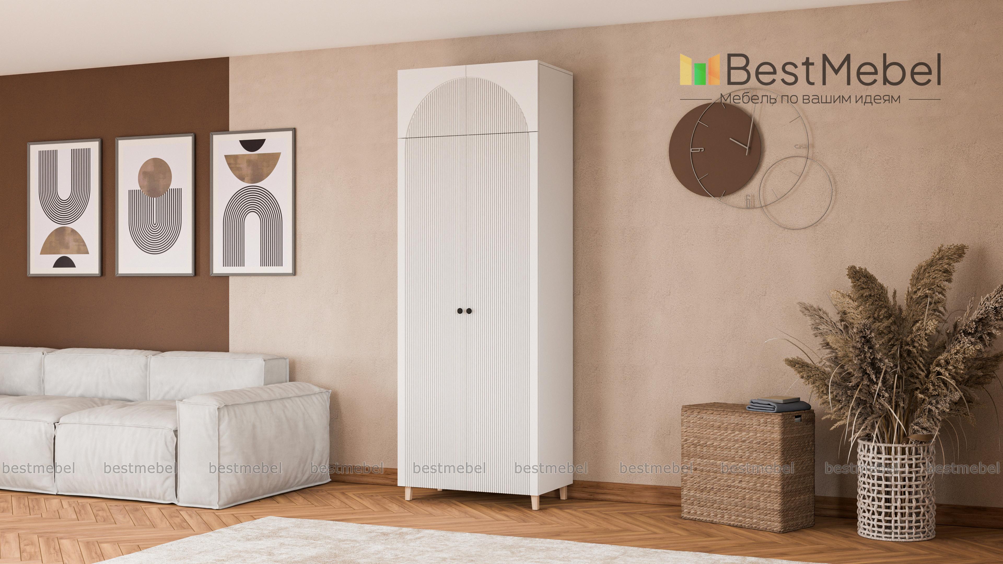 Шкаф распашной Вивьен 5 BMS сэкономит место и сохранит вещи в порядке. Высокая конструкция с деревянными ножками, просторной антресолью и штангой за двумя дверцами выручит вас, когда пространство комнаты ограничено. Стилистическим акцентом в интерьере современной квартиры станет оформленный трендовым рельефом фасад из МДФ. Купить шкаф распашной Вивьен 5 BMS вы сможете в нашем интернет-магазине с индивидуальным подбором размеров, цвета и наполнения.