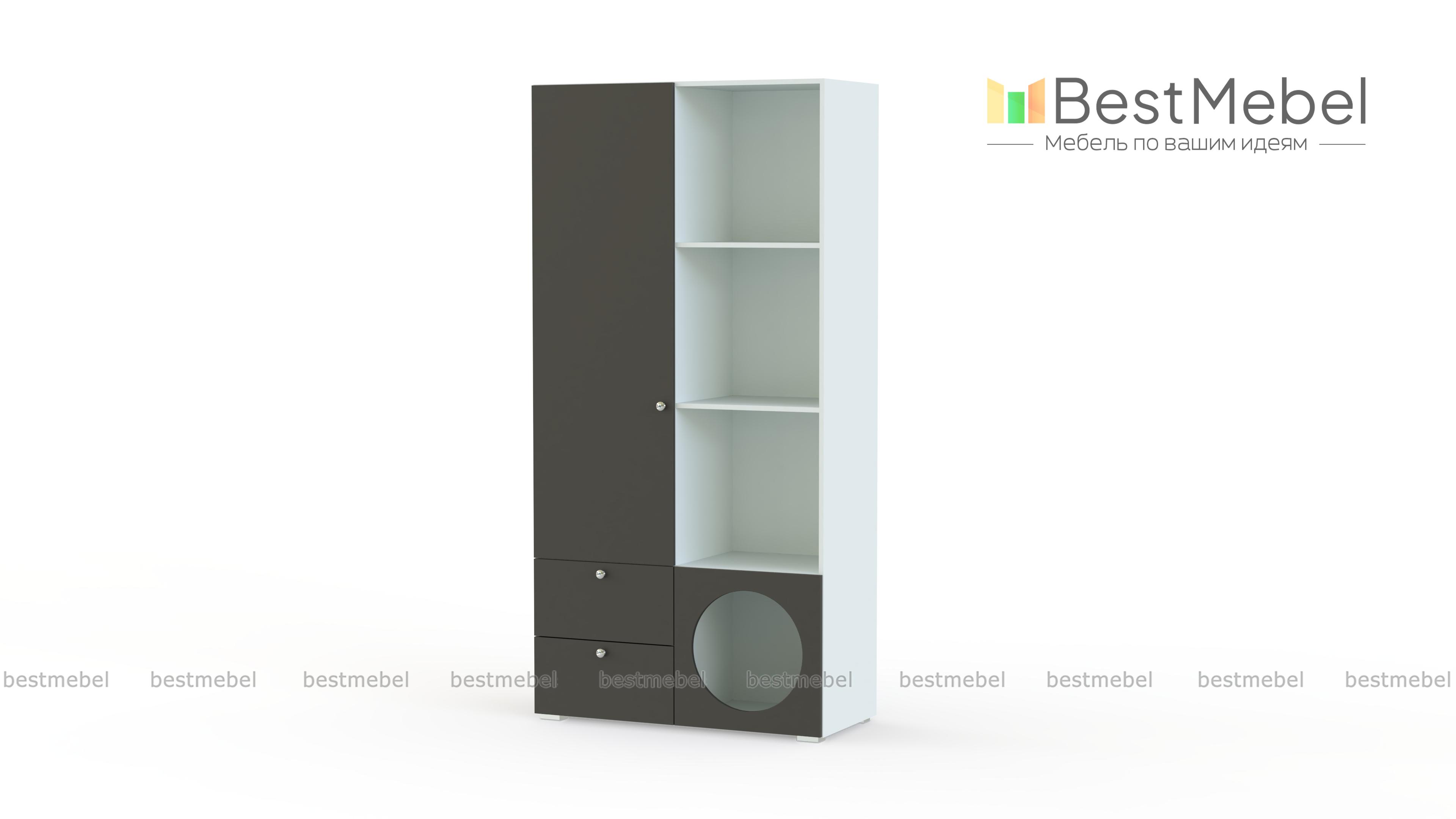 Стеллаж Авелин 20 BMS с круглым вырезом предлагает вам много места для хранения мелочей. Книги, интерьерный декор и различные аксессуары будут выигрышно смотреться на открытых полках, а прочие вещи можно спрятать в паре выдвижных ящиков и закрытом отделении. Спокойные базовые оттенки корпуса и фасадов подойдут большинству современных интерьеров. Купить стеллаж Авелин 20 BMS вы всегда сможете в нашем интернет-магазине, по желанию изменив цвет и размеры.
