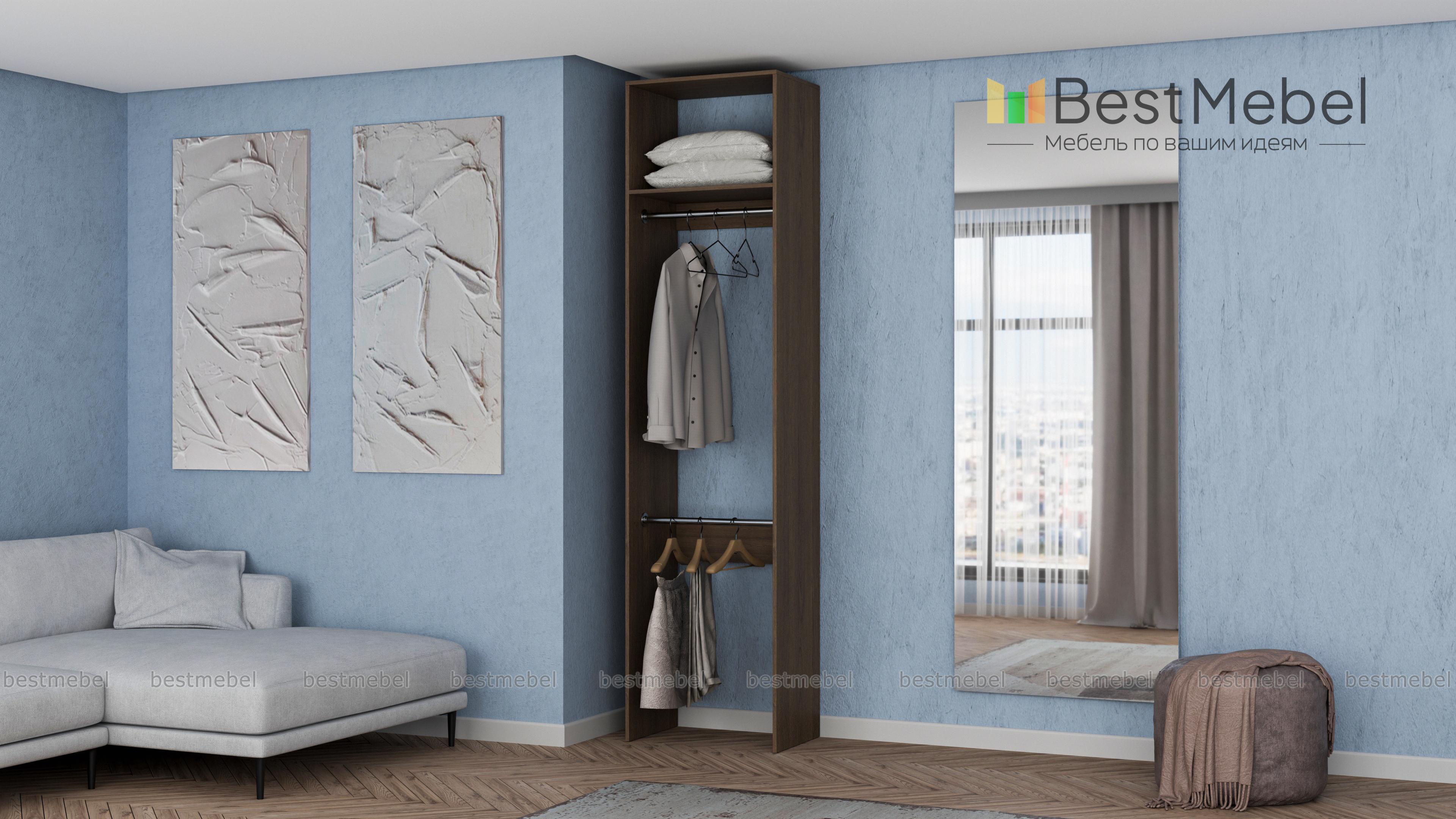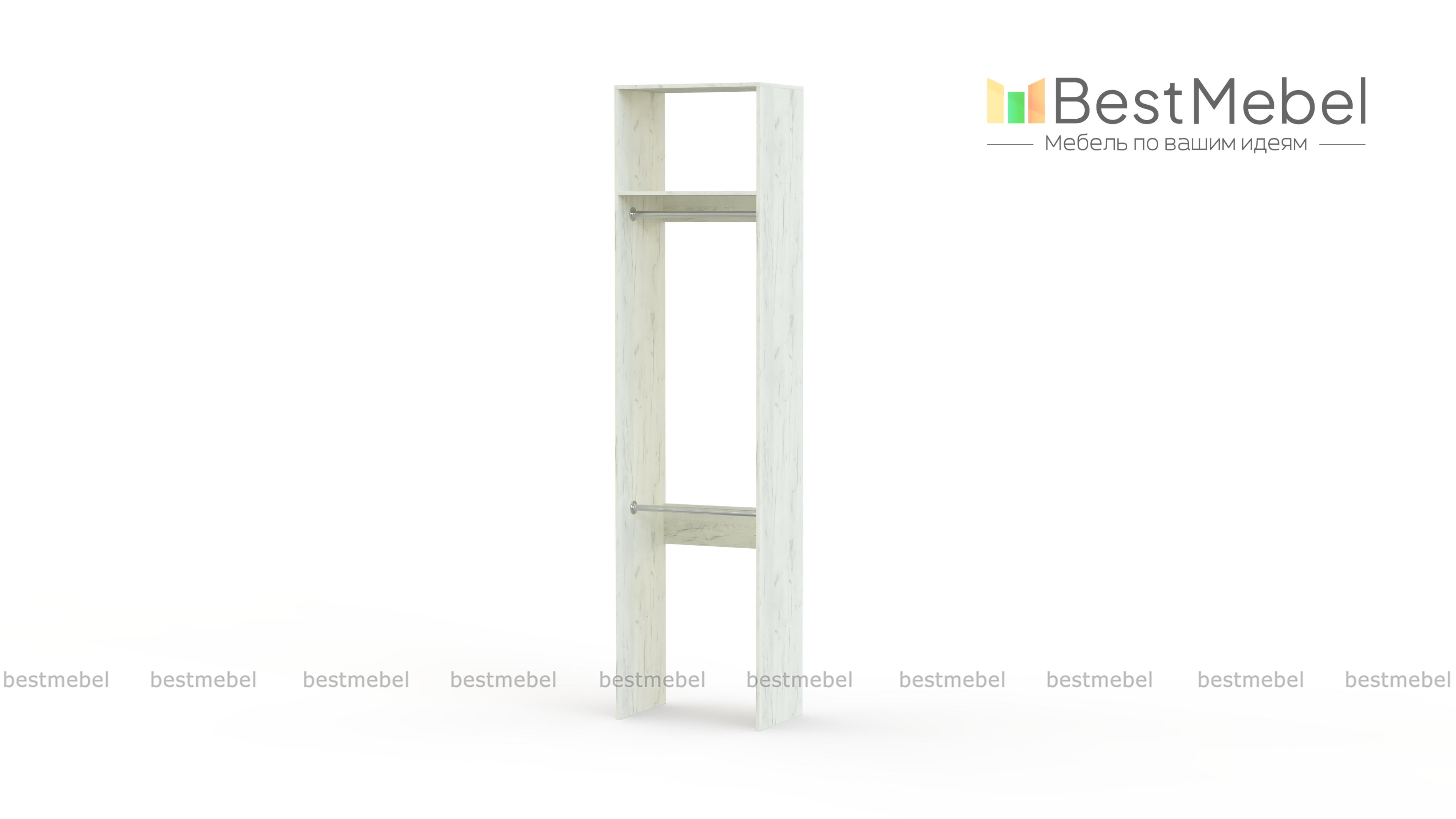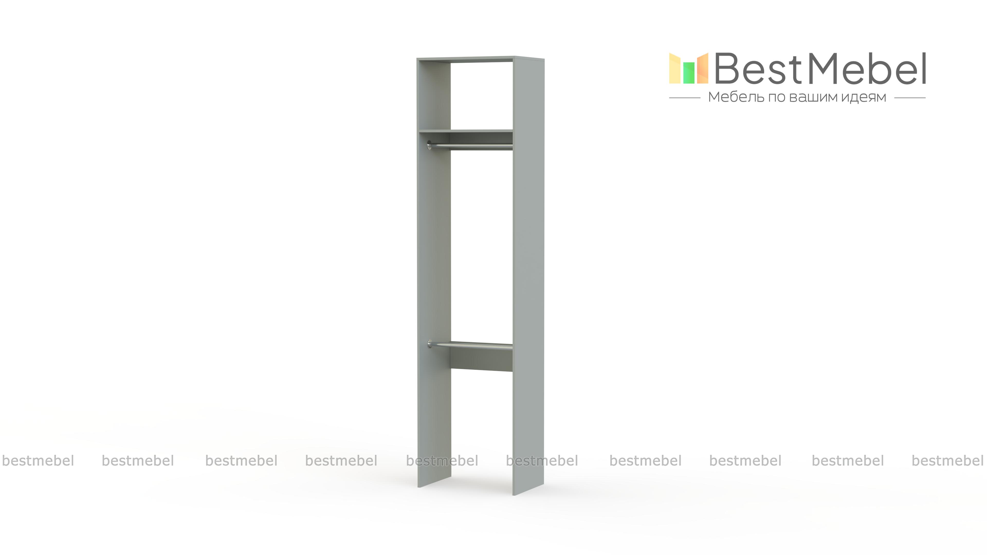 Стеллаж для одежды Мирта 30 BMS имеет небольшую ширину и прекрасно подходит для малогабаритных помещений. Открытая легкая конструкция без задней стенки укомплектована двумя штангами для вешалок — вверху и внизу, а также одной верхней полкой. Для изготовления стеллажа использована ламинированная плита — экологичный и износостойкий материал. Купить стеллаж для одежды Мирта 30 BMS вы сможете в нашем интернет-магазине в любом удобном размере и оттенке из каталога.