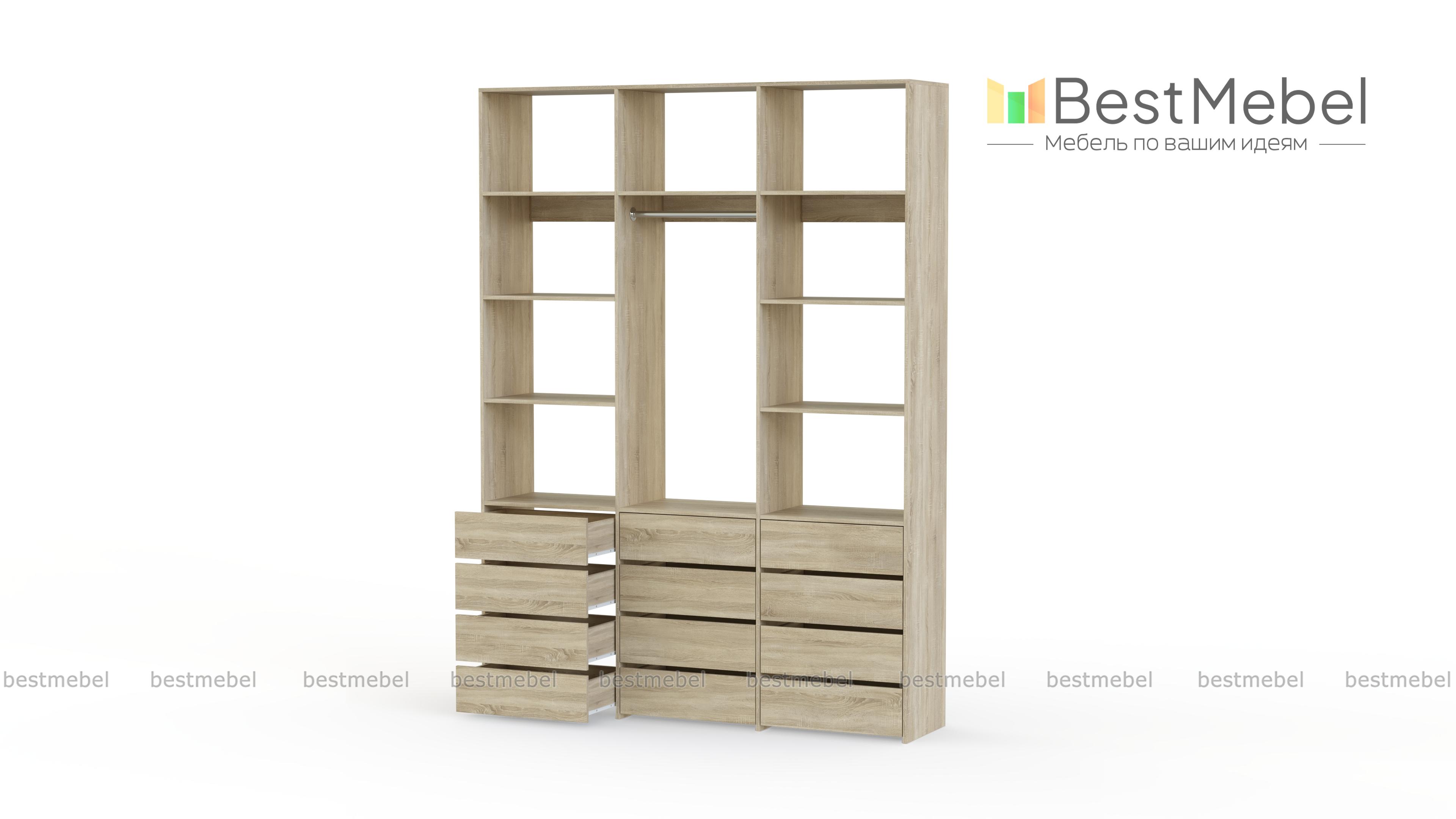 Стеллаж для одежды Мирта 49 BMS подходит для обустройства прихожих и гардеробных. Выдвижные нижние ящики, штанга и расположенные сверху и по бокам полки позволят компактно разместить одежду на вешалках и в сложенном виде, белье, обувь и аксессуары. Изготовленный из ламинированной ДСП, стеллаж отличается надежностью и долговечностью. Купить стеллаж для одежды Мирта 49 BMS вы всегда сможете в нашем интернет-магазине с индивидуальным подбором цвета и размеров.