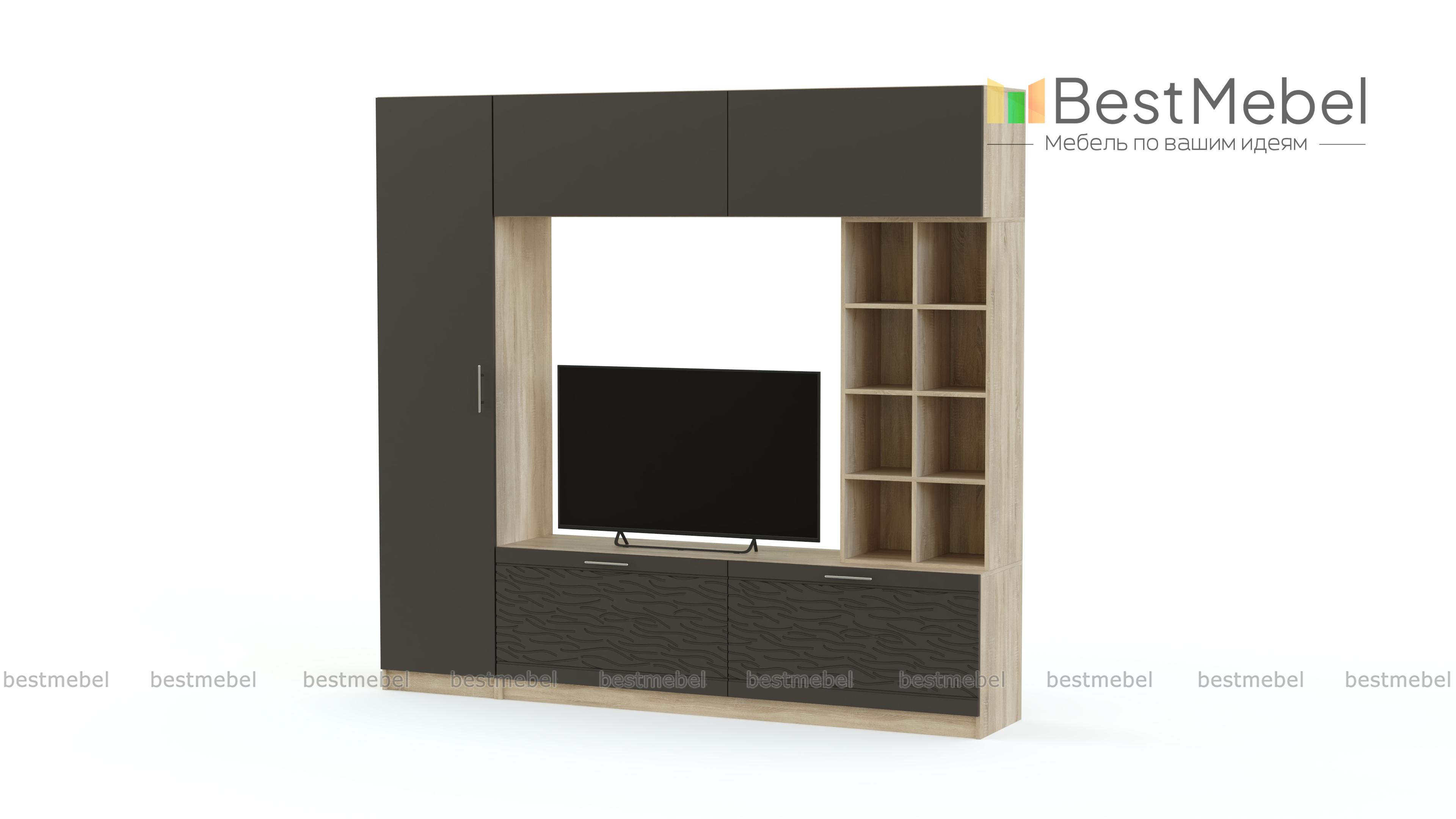 Стенка-горка Вельвет 3 Глянец BMS из популярной серии современных моделей с 3D рисунком порадует владельцев ярким дизайном и вместительностью. Расположенные по периметру бельевая колонка, низкая широкая тумба, стеллаж и антресоль с откидными дверцами позволят эффектно разместить в центральной нише ТВ. Компактная стенка сэкономит полезную площадь, а контрастные терракотовые фасады добавят помещению необходимый объем. Купить стенку-горку Вельвет 3 Глянец BMS по доступной цене приглашаем в наш интернет-магазин.