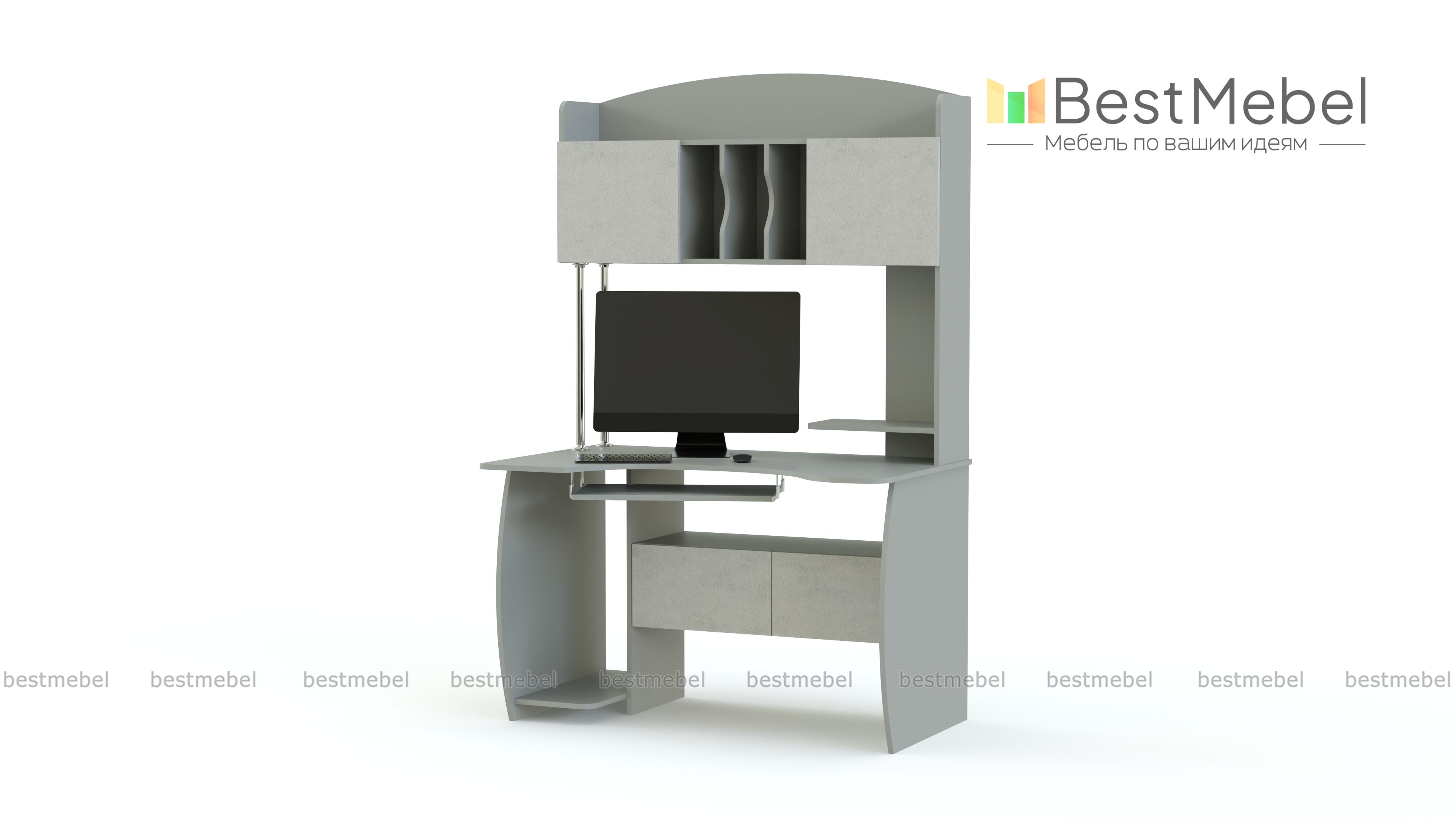 Компьютерный стол МБ 30.1 BMS – крупногабаритная модель, которая порадует владельца эргономичностью, ярким дизайном и высокой функциональностью. Стол оборудован удобной столешницей с изогнутым передним краем, выдвижной полкой для клавиатуры, нишей под системный блок, выдвижными ящиками и комбинированной надстройкой. Все углы модели безопасно скруглены, а цветные матовые фасады станут отличным решением для современных интерьеров. Купить компьютерный стол МБ 30.1 BMS вы сможете в нашем интернет-магазине по лучшей цене.