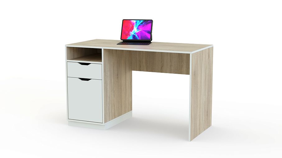 Письменный стол Szynaka Happy 40 BMS станет практичным дополнением комплекта или самостоятельным предметом интерьера молодежной комнаты. Модель отличается простым и функциональным дизайном, а классическое цветовое решение в светлых древесных тонах позволит легко вписать ее в меблировку. Стол оборудован просторной столешницей, удобной для письма и работы за ноубуком, и тумбой с выдвижным ящиком, распашным отделением и нишей. Фасады дополнены практичными ручками-выемками. Купить письменный стол Szynaka Happy 40 BMS приглашаем в наш интернет-магазин.