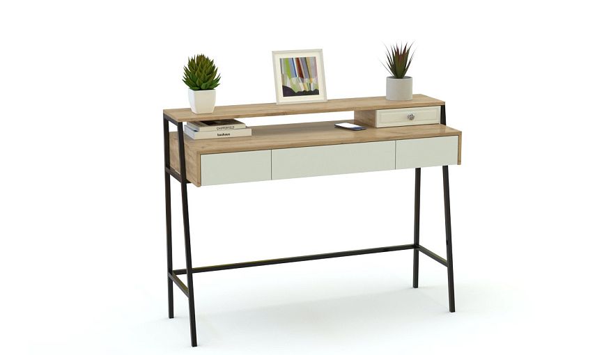 Консольный стол Хлоя 12 BMS гармонично впишется в современные минималистичные интерьеры и разместит под рукой все необходимые уходовые средства, а также декоративные мелочи. Модель с металлическими трапециевидными опорами оборудована просторной прямоугольной столешницей, надстройкой с нишей и выдвижными ящиками. Высокие эксплуатационные свойства материалов обеспечивают столику простоту ухода и эстетичный внешний вид. Купить консольный стол Хлоя 12 BMS вы сможете в нашем интернет-магазине.
