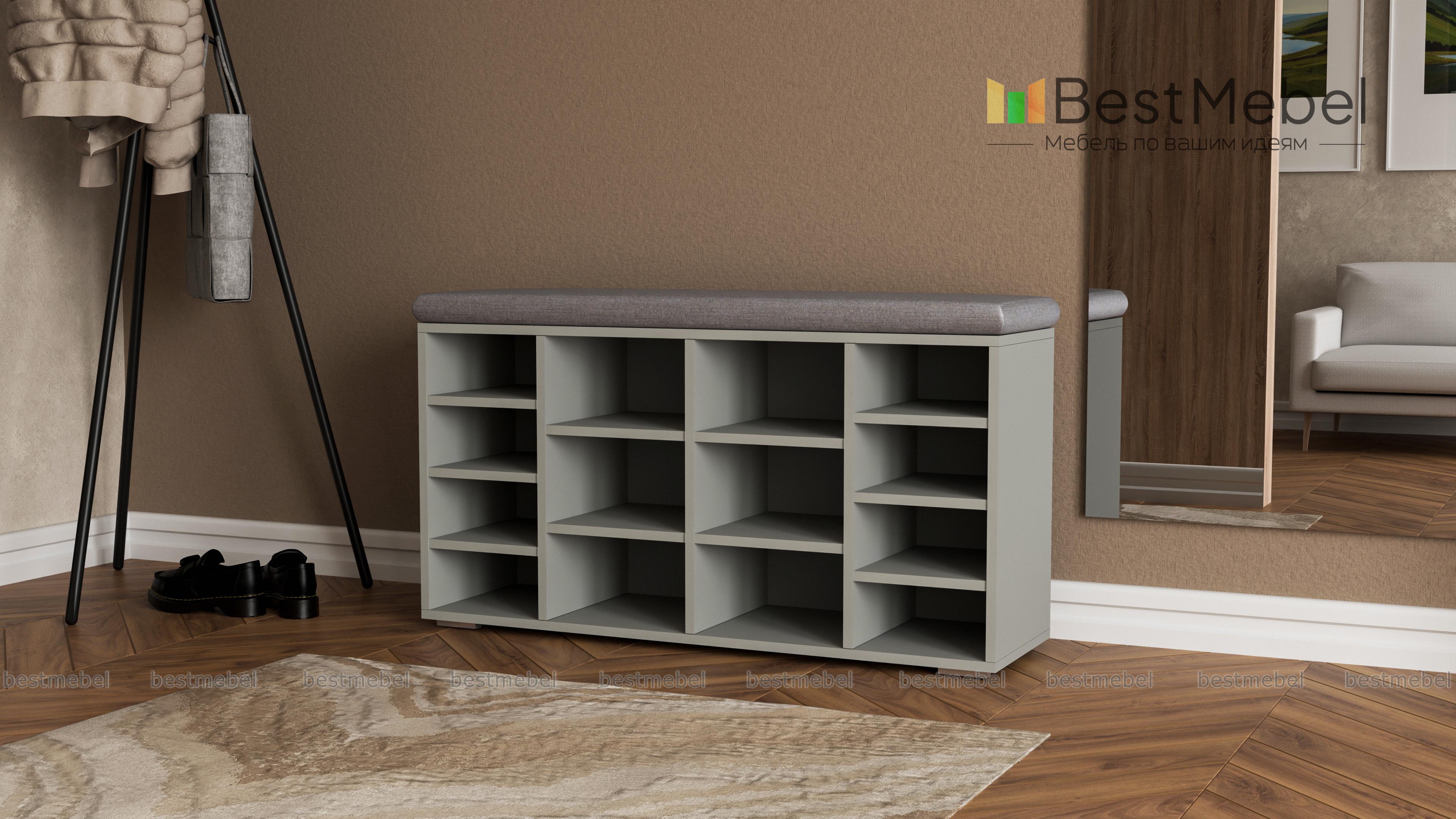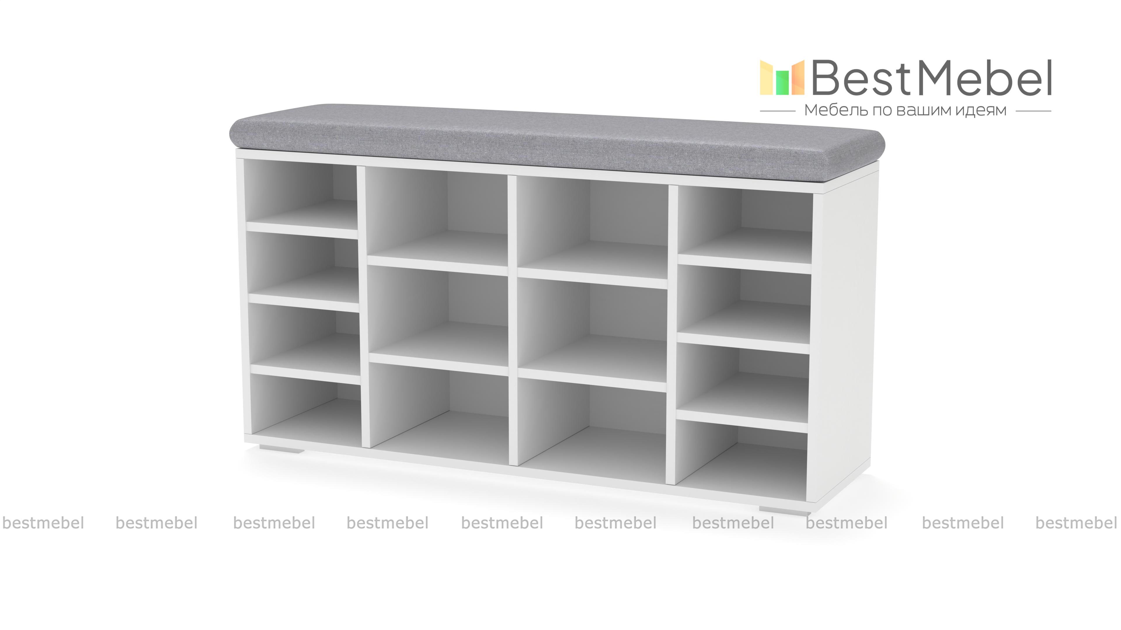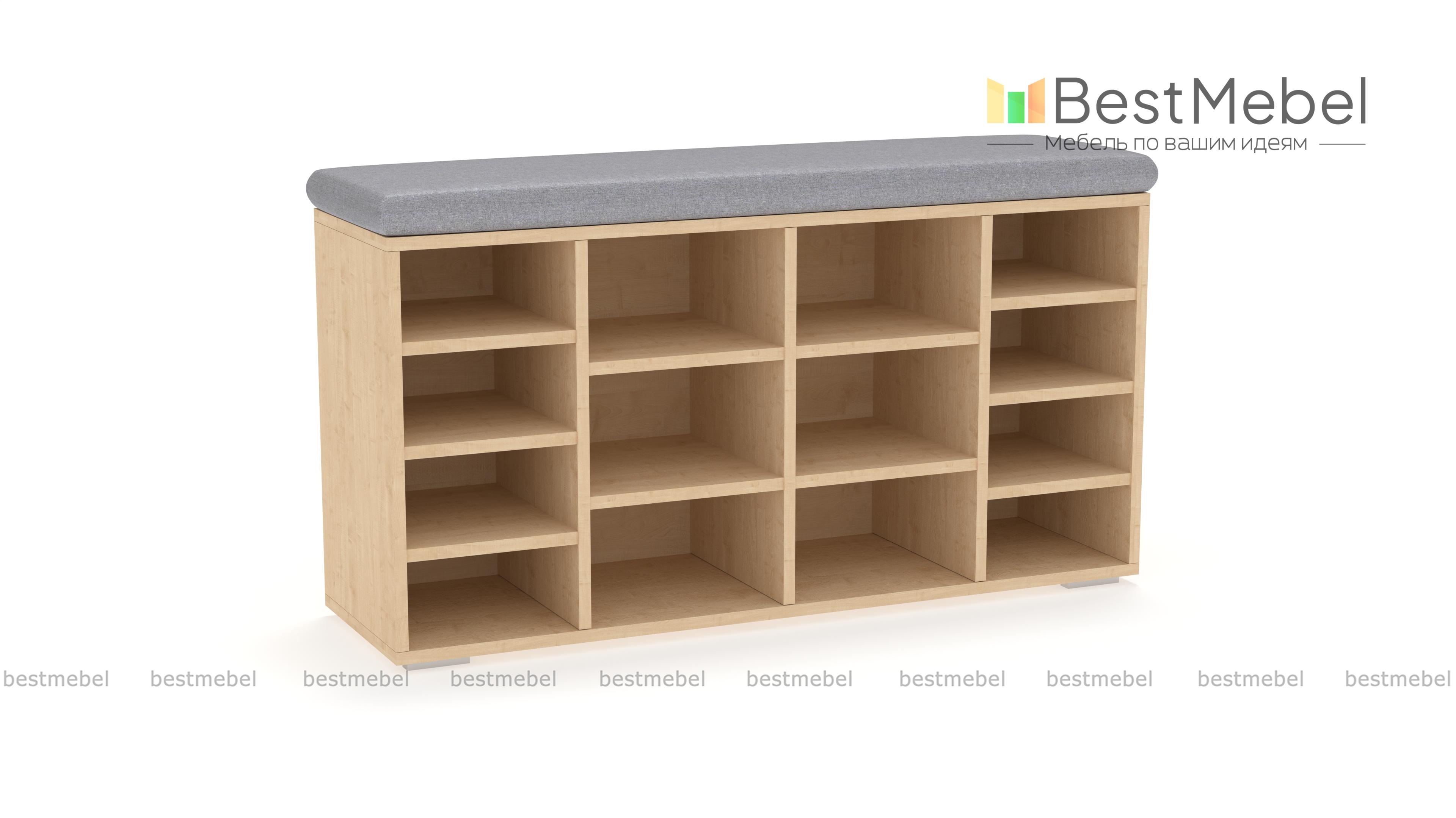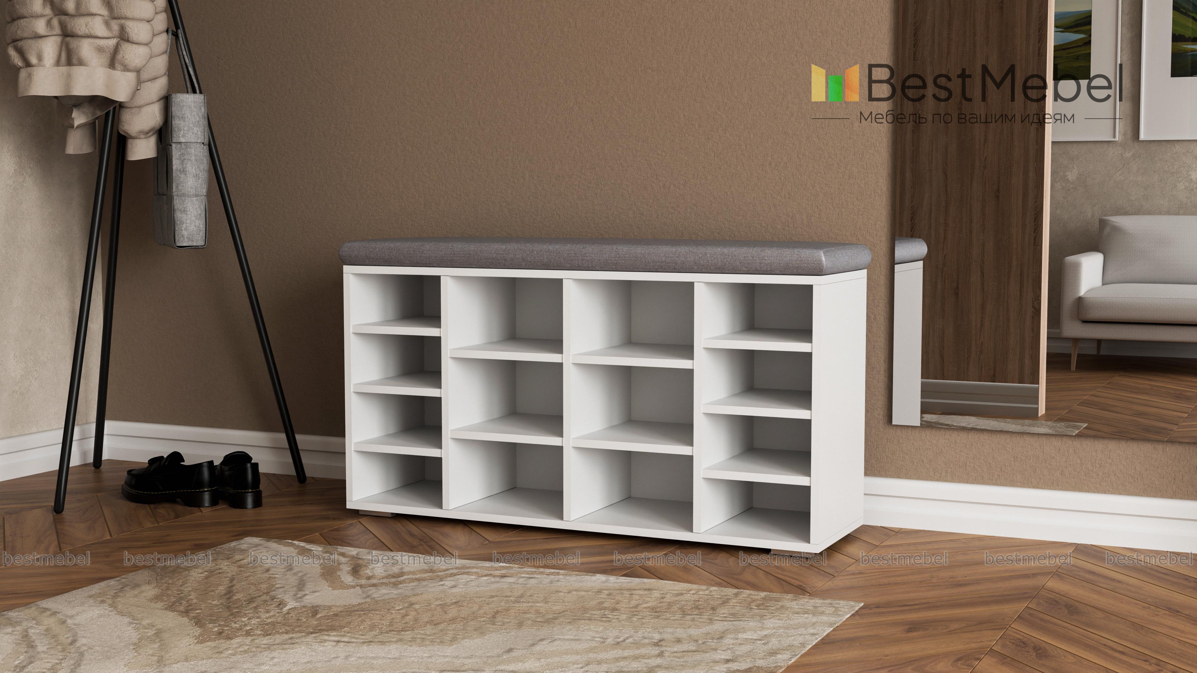 Тумба для обуви Шелф BMS гармонично впишется в современные интерьеры и поможет оптимизировать хранение обуви, уходовых средств и аксессуаров. Широкая низкая модель оборудована нишами разных размеров и просторной столешницей, которую элемент в мягкой обивке превращает в комфортную скамью. Открытая конструкция позволит быстро найти нужную пару и обеспечивает содержимому проветривание. Купить тумбу для обуви Шелф BMS по отличной цене приглашаем в наш интернет-магазин.
