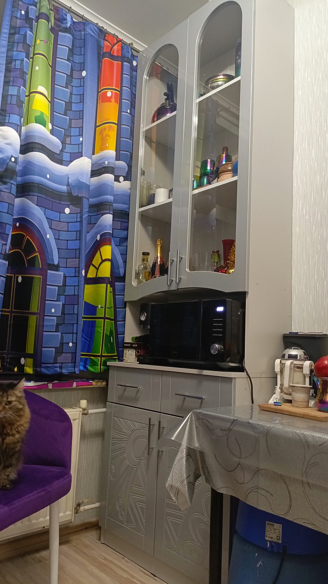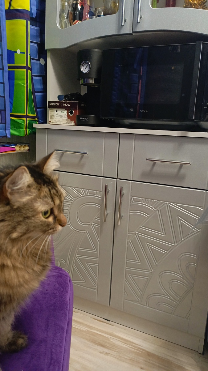 Отличный буфет, вместительный и при этом компактный. Попросила сделать ещё и фрезеровку такую же, как на кухонных шкафчиках