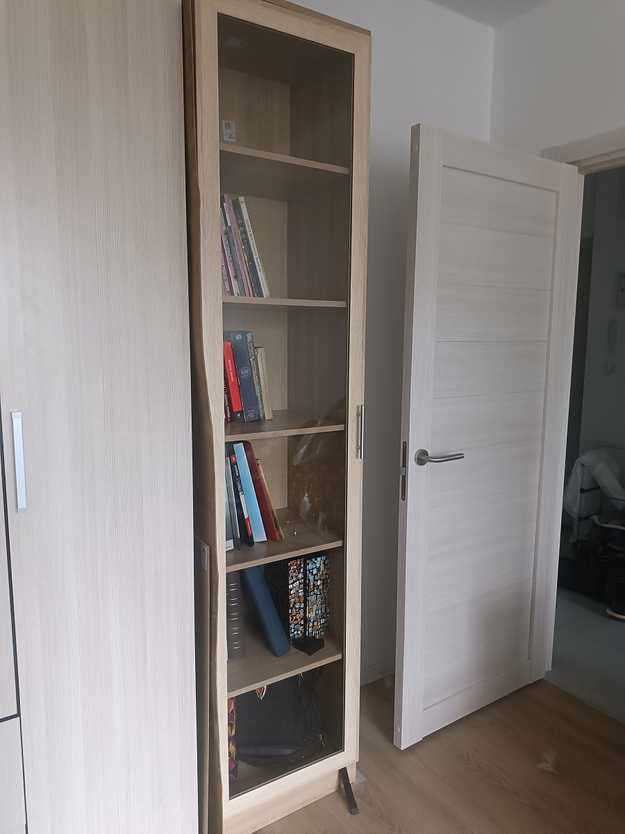 Превосходный книжный шкаф, изготовленный по индивидуальным размерам. (Кстати о размерах: кажется, мы в расчётах пожадничали с глубиной - кажется, книги в него можно поместить "по два ряда" на полку 😂. Ну да ладно, будем умнее.) Огромное спасибо мастерам.))