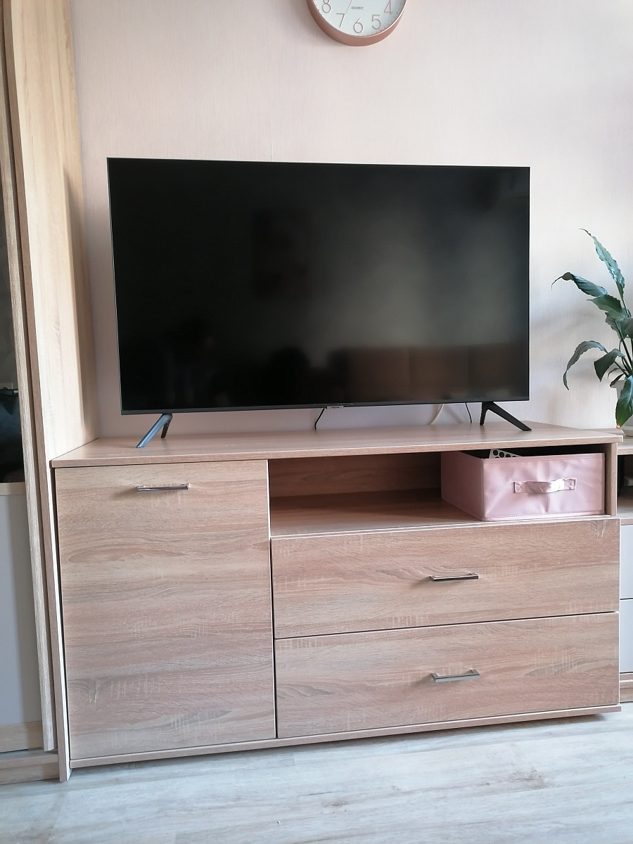 Лаконичный дизайн, вместительный. Заказала в качестве тумбы под ТВ. По цвету подобрала к другой мебели, чуть изменила размеры.