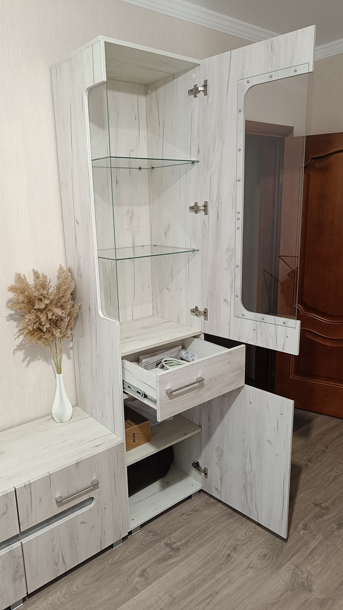 Выражаю огромнейшую благодарность BestMebel за данную обувницу. Очень долго искали и не могли найти подходящую, в которую можно было бы уместить вообще всю обувь целой семьи. Как обычно радуют возможностью выбора цвета и размеров, а также учитывают все пожелания клиента. Так, в моем заказе сделали крепление к стене, регулировку полок по высоте, скок под плинтус, и даже сделали дополнительную тумбу для обуви в идентичном дизайне. Оставшуюся мебель для прихожей также заказал здесь.