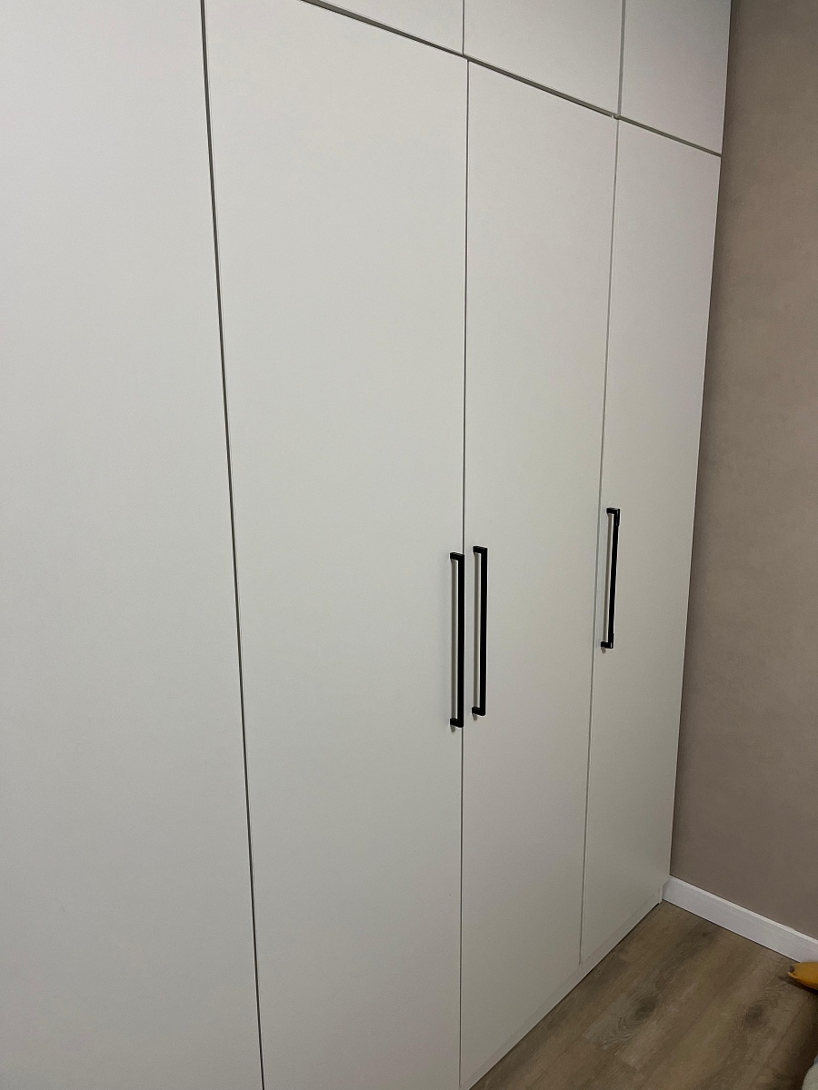 Заказ №1086085Заказывал шкаф по индивидуальный размерам. И некоторым моим доработкам. Менеджер быстро нарисовал проект согласовали.  Выглядит очень дорого. Очень быстрое производство и доставка. 1 раз вижу, чтобы изготовили все по моим размерам за 3 дня!!и привезли за неделю . Шикарный сервис. Единственное пожелание на дверях использовать одинаковые петли, так как по инструкции не возможно понять какие петли куда крепить. В остальном сборка простая, собирал сам.
