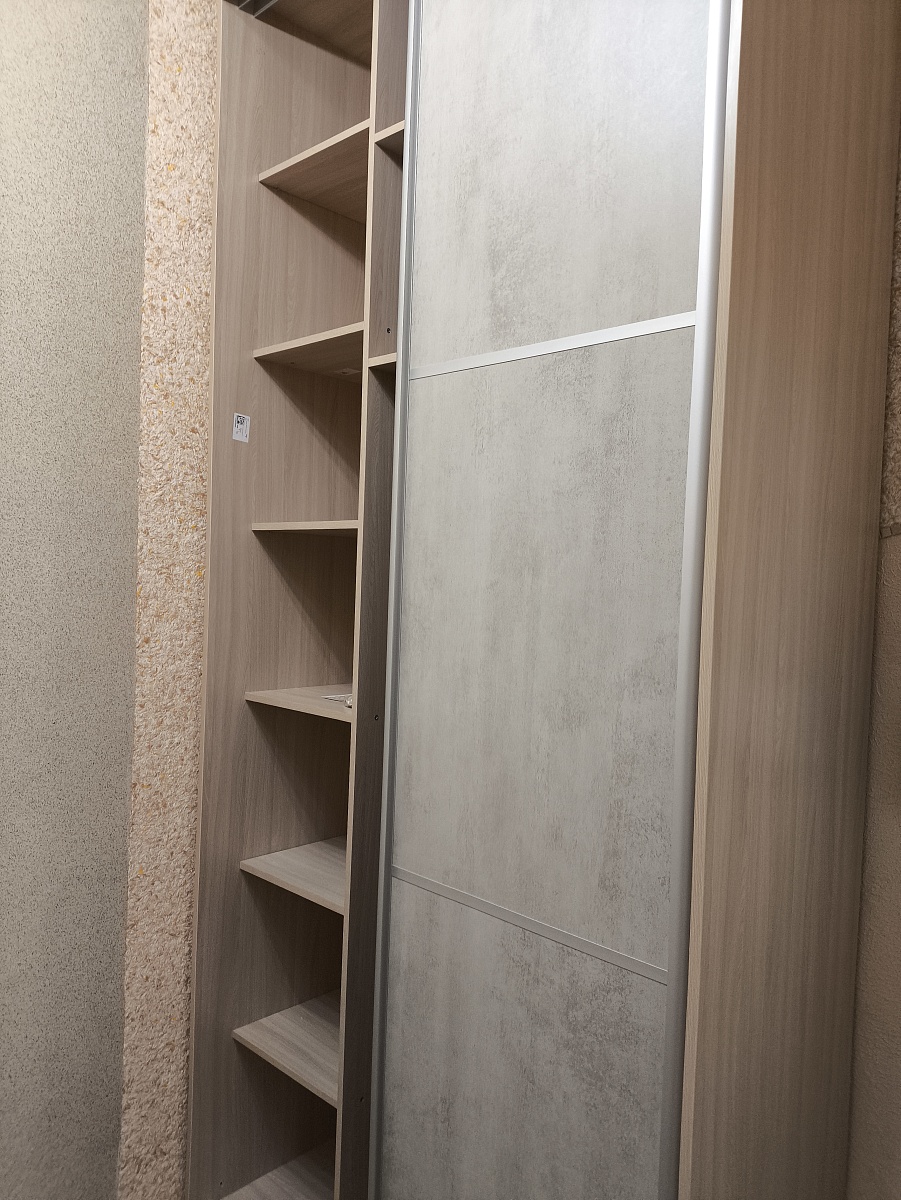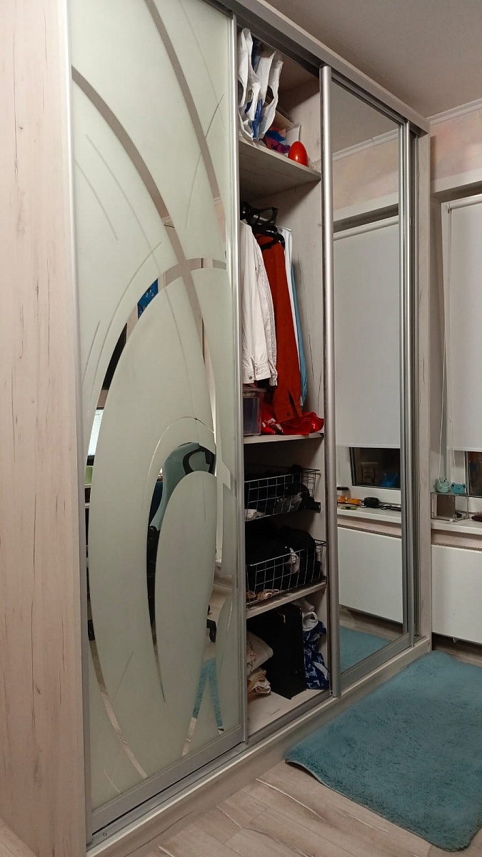 Заказ 00000531079, изделие Двери-купе Глейз 1 BMS (1000х2400х34)Шкаф делали сами по своим размерам, заполняя имеющийся угол. Надо было подобрать двери, чтобы идеально вписались в заданный проем, и чтобы было бюджетно. Все получилось:  Двери-купе Глейз 1 BMS отличные, по размерам все идеально получилось подобрать. Наверно, только этот продавец и предлагает такую гибкую размерную сетку по приемлемым ценам. Сами двери добротные.