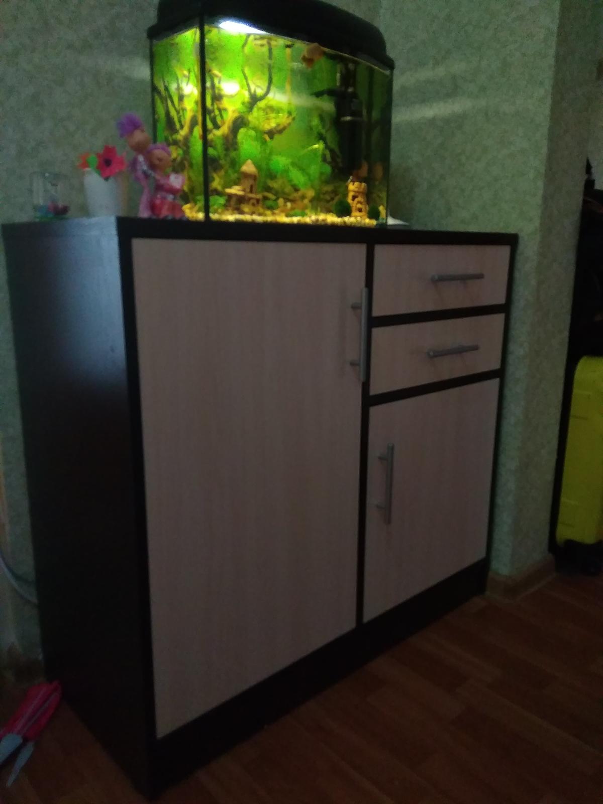 Отличная тумба, приятный современный вид, цвет выбрали золотой крафт, смотрится прекрасно, отдельно докупались ножки хром в цвет ручек, чтобы влажную уборку делать, но можно было и подвесить. На тумбу кладу ноутбук, сумки гостей, фрукты/десерты, много чего, внутрь вмещается много контейнеров с всякой всячиной: книги, нитки, лекарства и пр. Я на неё сажусь иногда, выдерживает (по этой причине не хотели подвешивать). Размер тумбы на фото: 220 × 44× 40 см. Рекомендую!