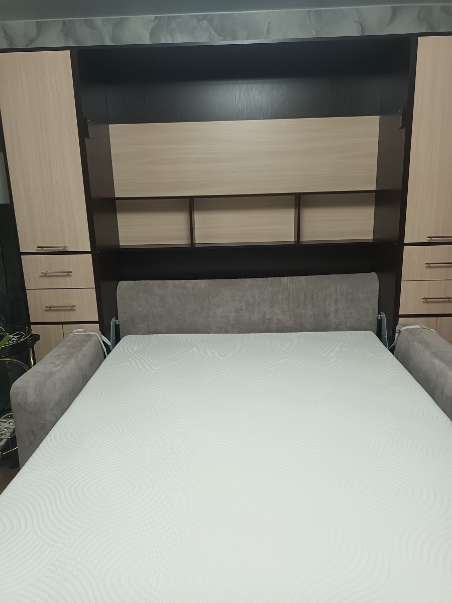 Шкаф-кровать Фердинан. Заказ пришел в срок  после подтверждения эскиза с конструктором. Сборка от магазина. Первая ночь прошла не без приключений, проспала на работу. Очень  комфортно  было спать.  Сиденье от дивана встает в нишу за кроватью, что не только очень удобно (не болтается по комнате) но и красиво.